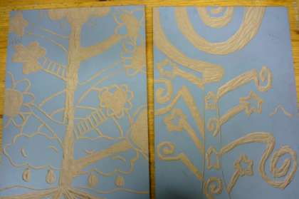 1組は、2回目の版画の学習です。だいぶ、慣れてきて彫りが進んできました。印刷するのが楽しみになってきました。
