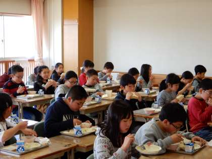 「パン2枚は,多くね?」「いやいや,今までより薄くなったから」など会話が聞こえながら,5年生第1回目の給食を食べました。おかずなども多くなっていて,初めは,残っていましたが,お代わりをする子がたくさん居て,最後は,完食に近づきました。まだ,好き嫌いがある子も見られます。少しずつ食べられるようになると良いですね。