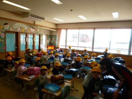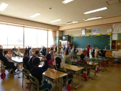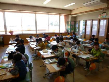 上級生に案内されながら、教室に入ることができました。初めてのことばかりでドキドキしましたが、元気いっぱいに過ごしました。
