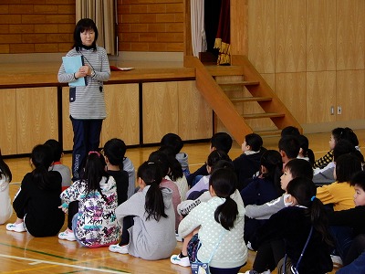 どんな5年生として生活してほしいか。5年生が関係する行事の話し等を聞きました。全員が話している先生の顔を見て,とても真剣な表情で話を聞くことができました。