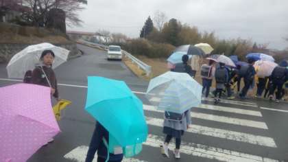 登校班の名簿を確認したり,集合場所や集合時刻の確認などを行いました。その後は,集団下校となりました。方部担当教員が通学路を一緒に歩き,危険箇所などを確認しました。