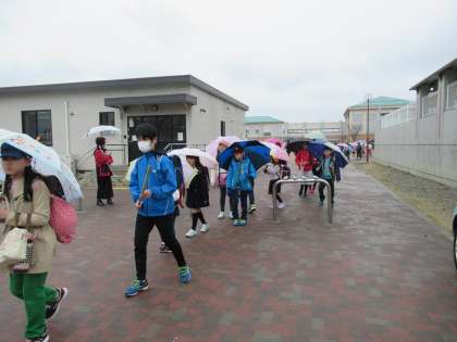 集合場所や集合時刻の確認をしました。雨の降る中でしたが、上級生が下級生を気遣いながら下校していました。