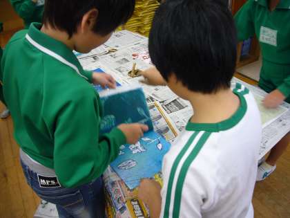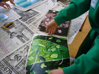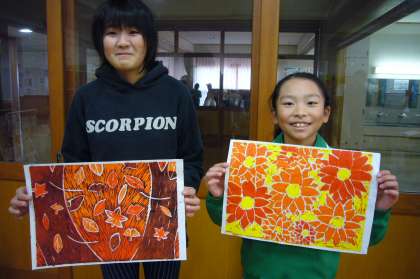 版画の3回目の刷りを行い,版画が完成しました。3色のすてきな作品ができあがりました。
