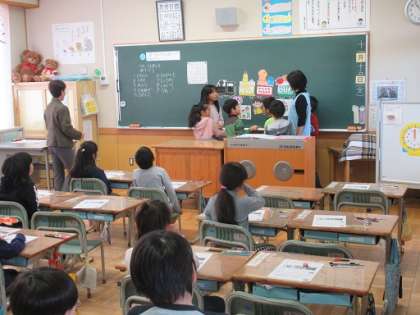 2年生の授業で栄養教諭とのT.Tで食べもののはたらきを知って、丈夫なからだづくり、健康を守るための学習をしました。今日の学習で「好き嫌いなくバランスよく」食べれるようになってほしいです。