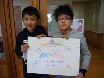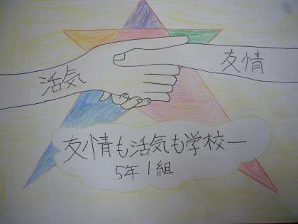 2学期の始めから話し合いを重ねてきた「クラスのマーク」。やっと,完成です。すてきなサブタイトルがついています。残りの5年生での生活を充実させて,よりよい学級をめざし,最高学年へと進級できるようにがんばります!
