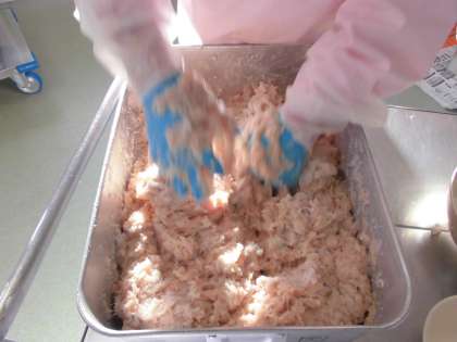 手作りつみれ汁は、たらのすり身と鶏ひき肉に生姜やかたくり粉を入れて、団子にして汁に落とします。ふわふわとした食感とおいしい出汁がでてとてもおいしいかったです。