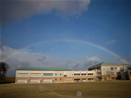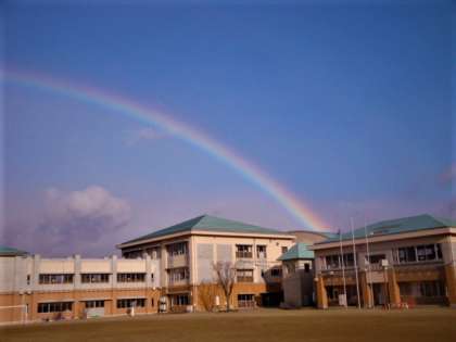 雨あがりに現れる虹は、見るものを幸せな気持ちにしてくれます。また、雨あがりに現れる虹は、「願いが叶う・明るい未来の到来」とも言われています。児童のみなさんにいいことがありますように・・・・・。