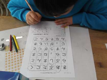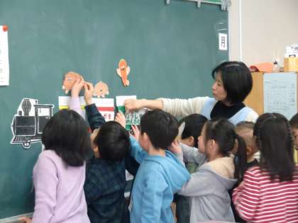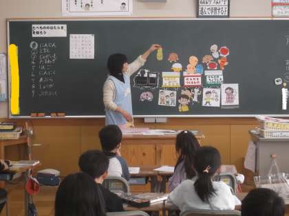 栄養教諭と食べもののはたらきを学習しました。クロスワードパズルを使いながら、「カレー」の材料をさがし、食べ物の3つの働きを知りました。「すききらいしないでたべるようにしたいです!」