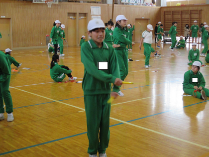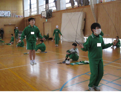 種目跳びでは、記録更新を目指して頑張りました。二重跳びを1分以上跳び続けたり、後はやぶさを何十回も跳んだり…自身の最高記録を塗り替えた子もいたようでした。