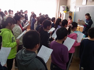 今年は,在校生代表として,卒業式に参加する5年生です。きれいな歌声で卒業生をお祝いするために,合唱の練習をしました。伴奏の子もとても上手に演奏できていました。初めて2つのパートに分かれての練習でしたが,とてもきれいな歌声を聞かせてくれました。