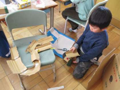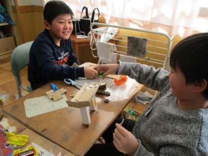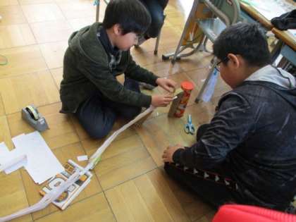 理科で学習したゴムや風のはたらき、磁石や電気の性質を利用しておもちゃ作りをしています。真剣なまなざしで仕組みを作る子、できたおもちゃが思うように動かず仕組みをもう一度見直す子など、試行錯誤を繰り返しながら熱心に取り組んでいました。