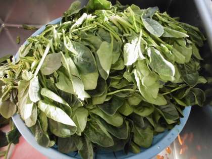山盛りのほうれん草(10kg)はナムルに使いました。