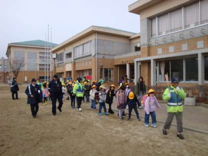本日、冨久山交番連協パトロール隊と富久山交番の署員、そして保護者のみなさまによる1年生の下校時のパトロールが行われました。このような活動により児童のみなさんの安全が守られていることに感謝いたします。