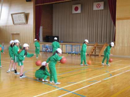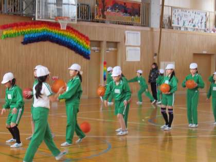 バスケットボールの学習に入りました。ドリブルやパス、シュートの仕方を覚えました。試合をするのが楽しみな子ども達です。