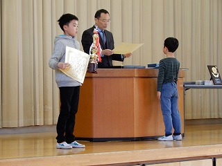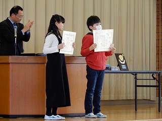 全校集会で,5年生からも2人の子ども達が表彰されました。堂々とした態度で,校長先生から賞状をいただきました。