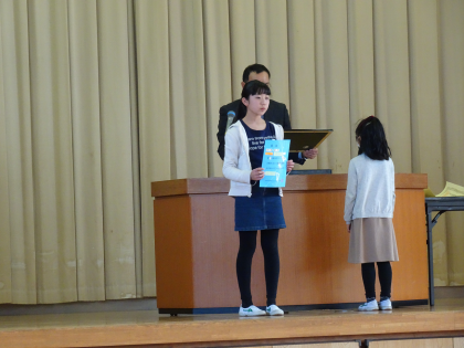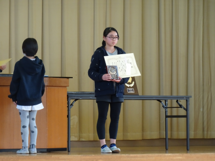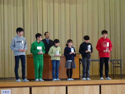 習字、音楽、スポーツでそれぞれ優秀な成績を修めた児童たちが表彰されました。