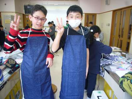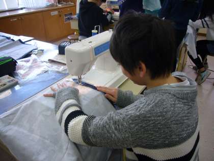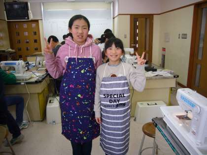 エプロン作りも,少しずつ進んできましたが,ミシンの下糸を正しくつけるところで,悪戦苦闘している子もまだいます。なかなか思うように進まないエプロン作りですが,がんばっています。