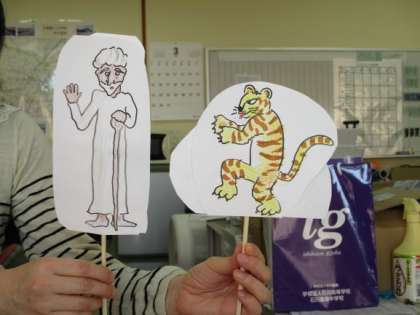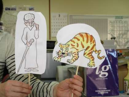 また、写真のようにぺープサートを作ってげきのようにすると、もっと楽しくなりますよ。