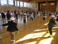 図画工作科「ちょきちょきかざり」をみんなで見合い,友達の作品の良いところをたくさん見つけました。少し早い「たなばたさま」を歌いました。(写真3)