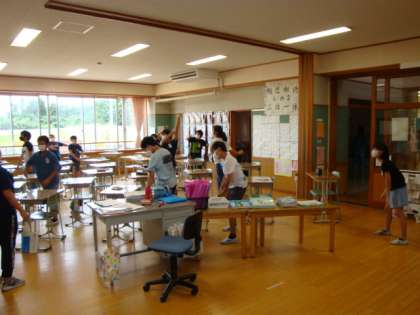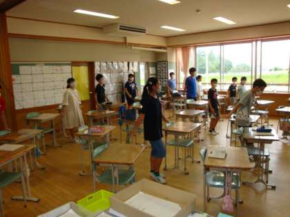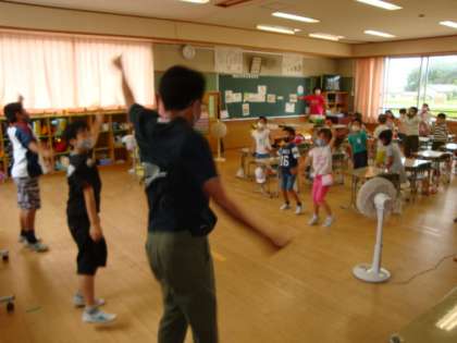 写真は、1年生と6年生の練習のようすです。6年生は、各クラスに指導に行っているのでクラスで練習している児童は少ないです。