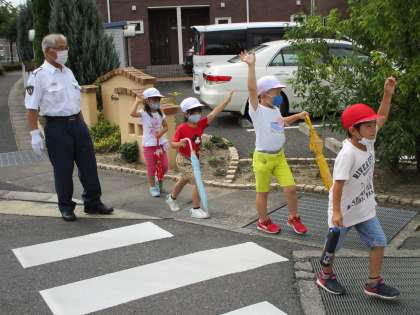 道路を歩く時の「はひふへほ」、横断歩道は「とんとん止まる」。これからもしっかり守って歩きましょうね。