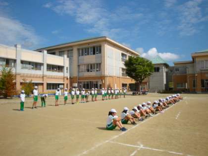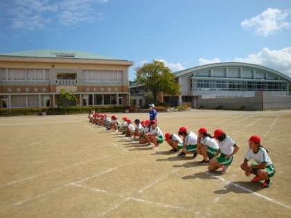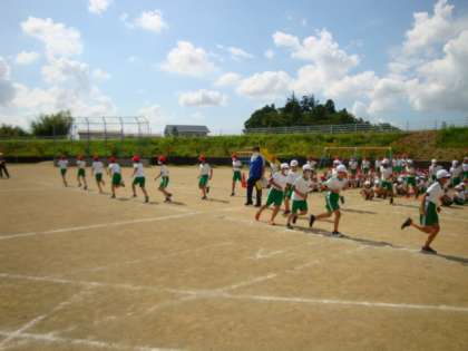 5・6年生の合同の体育の授業で、運動会の練習です。暑い中ですが、休憩時間を多めにとり、水分補給を行うなど熱中症への対策を十分に取りながら行っています。活動のようすをご覧ください。
