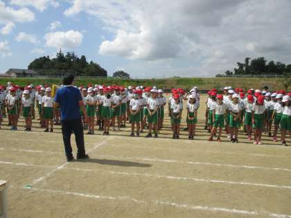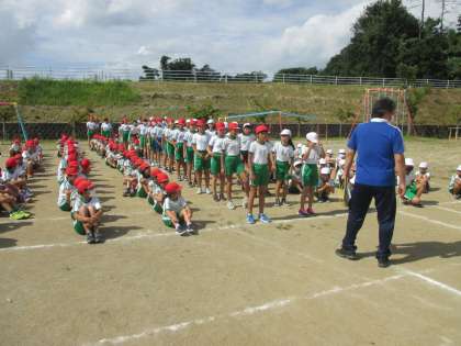 今日は、5・6年生合同で、運動会の団体種目「竹取合戦」の練習をしました。整列の仕方や入場の仕方、竹の棒を取るときの動きなどを確認しました。次回の練習では、実際に棒を取り合う練習をします。