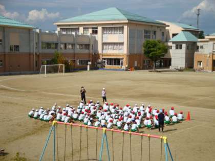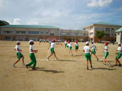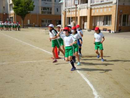 6年生の体育の授業です。暑い中でしたが、休けいや水分補給を適宜とりながら、児童のみなさんは元気に取り組んでいました。