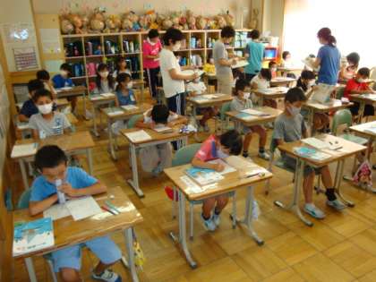 写真は、2年生の算数の授業で「ひっ算のしかたを考えよう」です。 数のしくみに着目し、筆算を順序立てて説明できる、そして、計算できることをねらいとしています。授業のようすをご覧ください。