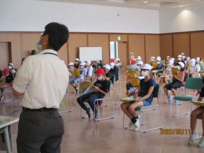 市役所で防災危機管理課の方から、様々な災害について市の取り組みを教えていただきました。具体的で豊富な資料を準備していただきました。「自分の身を守る」ための備えなどについても教えていただきました。日常の生活にぜひ、生かして欲しいと思います。子どもたちが、資料を持ち帰りましたら、保護者の皆様もぜひ、ご覧になって参考になさってください。