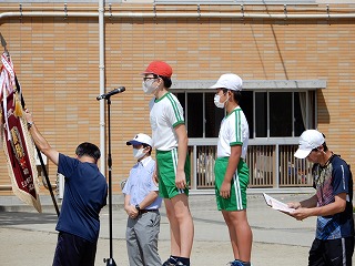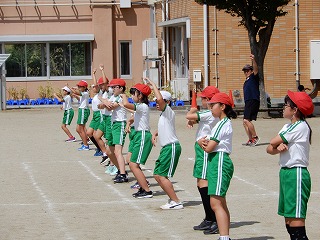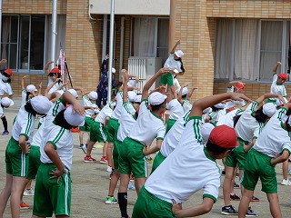 新しくできた「二小っ子体操第二」の全体練習が行われ,6年生のダンスリーダー達が活躍しました。リーダー達は全校児童の前で堂々と体操を披露することができました。また,閉会式の練習でも6年生達の活躍が見られました。