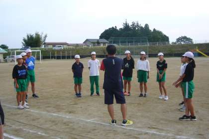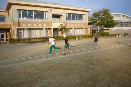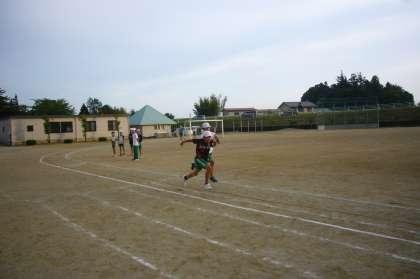 種目練習の後に、リレーの練習があります。担当の先生の話をしっかり聞いて、真剣に練習に取り組んでいます。