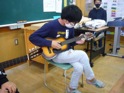 音楽の時間を使って、ミニミニ演奏会を開きました。とても素敵な演奏です。