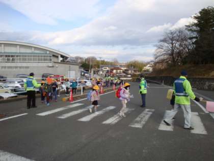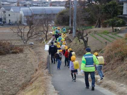 本日、寒い中、交番連協パトロールによる下校支援が行われました。富久山交番の警察官のみなさまをはじめ、連協メンバーの方たちに多数参加していただきました。1年生は、連協のみなさんと下校でき、頼もしい限りです。交番連協パトロール隊のみなさま、いつもありがとうございます。