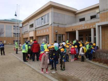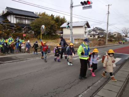 本日、番連協パトロールによる下校支援が行われました。寒い中でしたが、連協メンバーの方々に多数参加していただきました。1年生は、連協のみなさんと下校でき、頼もしい限りです。いつもありがとうございます。