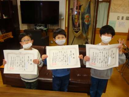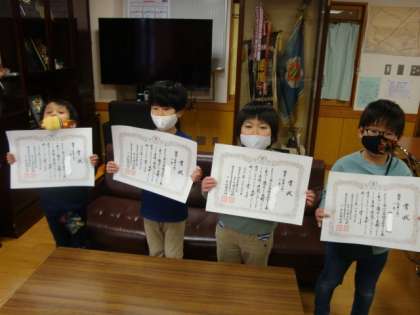 本日、校長室で県書き初め展の表彰伝達が行われました。本校の児童のみなさん、大活躍です。