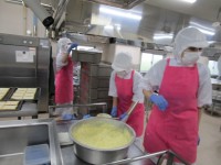 今日の給食は「カレー南蛮うどん・牛乳・ツナと切干大根のサラダ・いよかんゼリー」です。カレー南蛮うどんは、鶏肉、しめじ、じゃが芋、玉葱、人参、しいたけ、インゲン、葱が入りました。カレーうどんの汁が跳ねてしまうのが心配でしたが、丼ぶりをもって上手に食べていたようです。