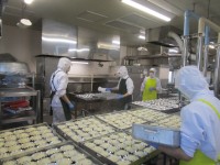 調理員さんたちが、一生懸命になって630枚の食パンにニンニク入りのマーガリンをぬり、焼いてくれました!