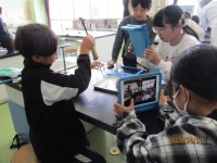 昨年、Legoマインドストームを使用したので、基本的な操作はできる子どもたち。今回は、「魚釣りゲーム」のプログラムを考えました。内容は、進む(前進)→釣り竿を下げる→魚を釣る→釣り竿を上げる→戻る(後進)。釣り竿を下げるプログラムが難しいようで、友達と相談しながら作成していました。何度もタイミングを調整しながら、魚釣りのプログラムを完成することができました。班の中で競争をしたり、班対抗の魚釣りゲームをして、作ったプログラムを楽しみました。