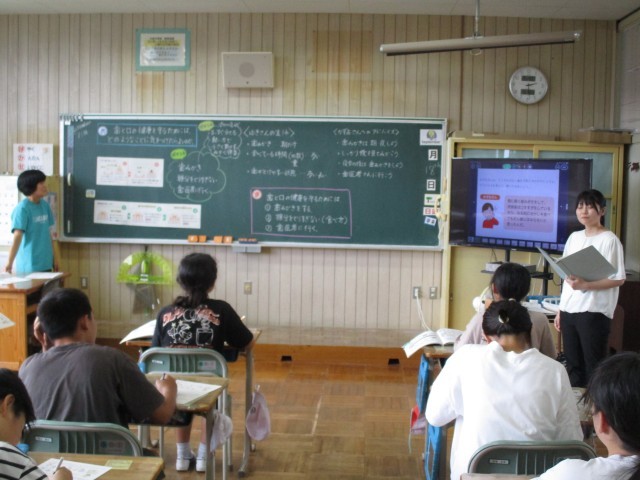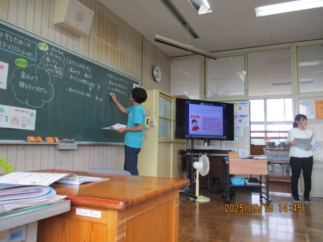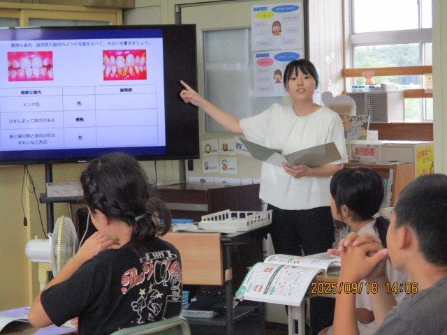 9月18日5校時目の6年生の保健の授業では、「生活習慣病の予防」をテーマに、歯と口の健康と毎日の生活習慣との関係について学習しました。