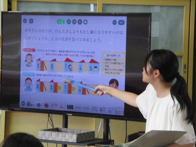 養護教諭と学級担任とのTTの授業でした。
