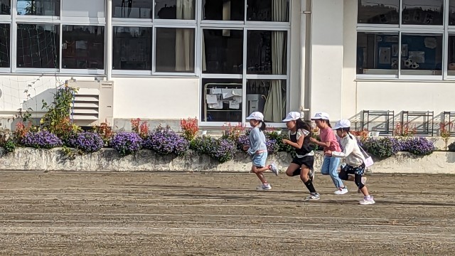 そして、朝のマラソンを始めます。毎朝、自分の体力作りのために、一生懸命に走っている子どもたちです。