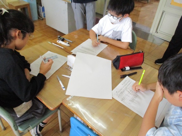 また、自分の考える時間を確保した後に、3人のグループで対話活動をして、自分の考えを友だちに伝えたり、分かりやすく説明したりするなど、友だちとの関わりの中で、考える力をのばし、どの子も「分かった」「なるほど」と納得する場面がありました。