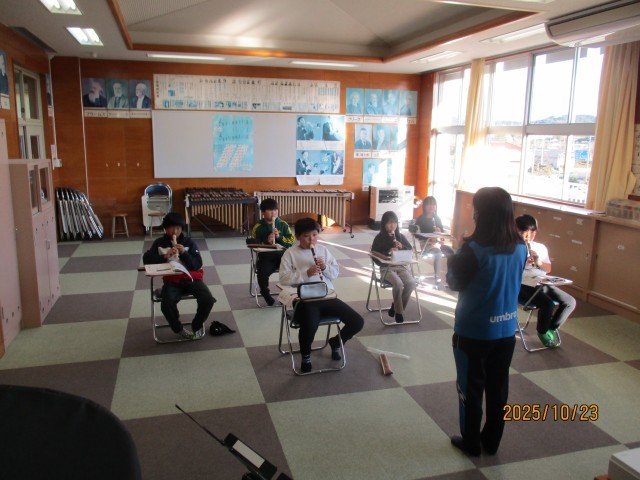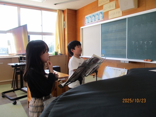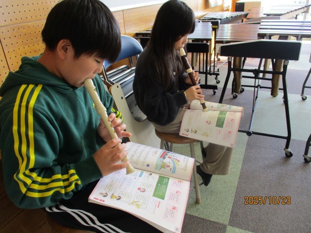 4年生の音楽は、2人組になって、リズムを合わせる練習をしていました。