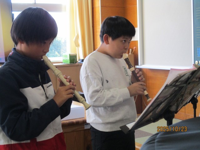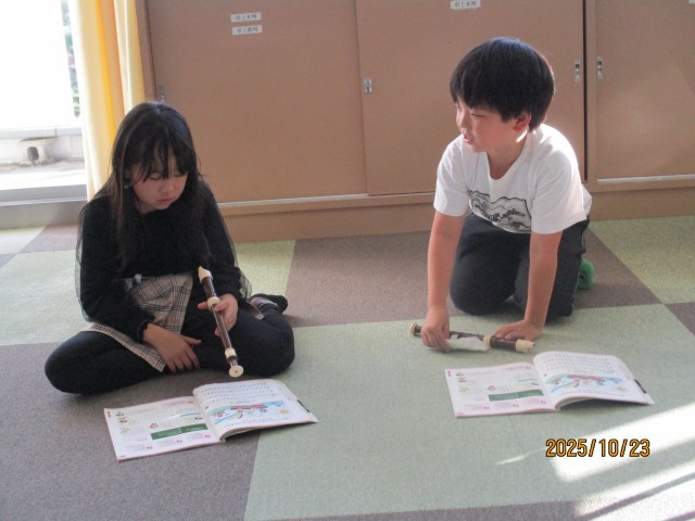 と先生に教えてもらい、2人で音を合わせて練習していました。