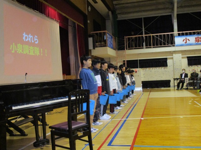3・4年生の複式学級の発表は、「われら小泉調査隊!!」を発表しました。