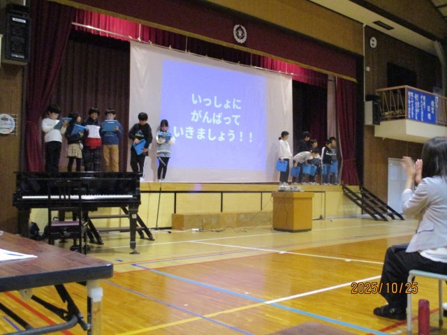 3年生は、全校生の家庭にお願いした「買い物アンケート」の結果を発表しました。ふだん買い物をしている場所や目的、選んだ理由などをまとめて発表し、会場からは「なるほど」という声が聞こえてきました。