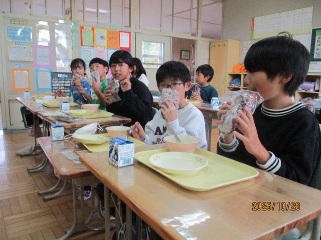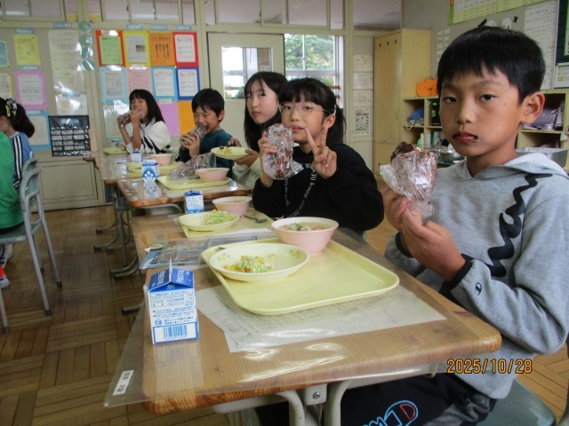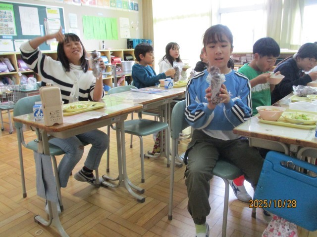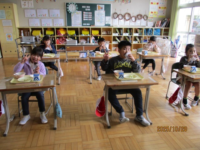 子どもたちは「やったー!」「これ大好き!」と笑顔いっぱい。友達と「おいしいね」と言い合いながら、楽しく味わっていました。
