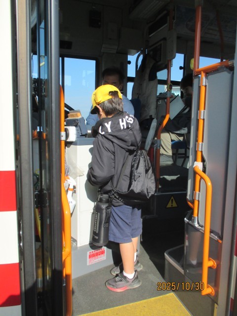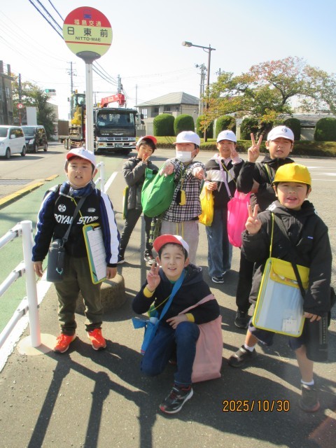 まず、バス停「小泉」から、路線バスに乗りました。整理券を取り、運賃箱にお金を入れる体験をしました。どきどきしながらの乗車でしたが、最後は運転手さんにお礼を言って、スムーズに降りることができました。「日東前」のバス停からお店までは、徒歩で向かいます。決まりを守って安全に歩き、無事到着できました。