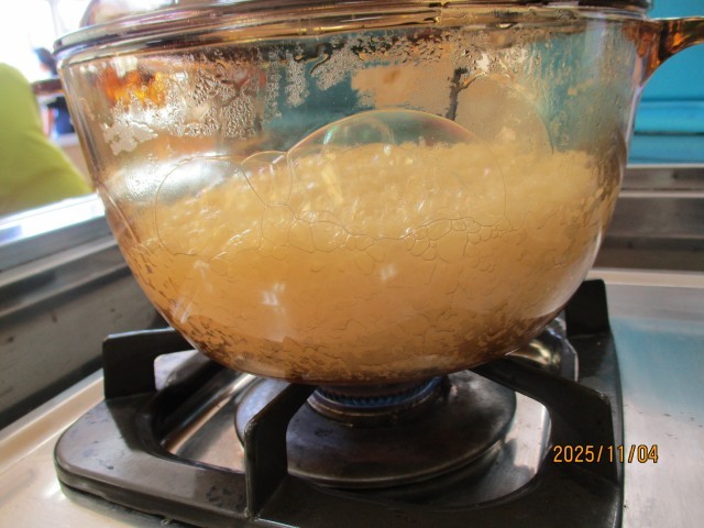 ガラス製のお鍋で炊くことで、お米が浸水していく様子や鍋の中でどのように変化をしていくのか、炊きあがるまでの様子を見ることができます。